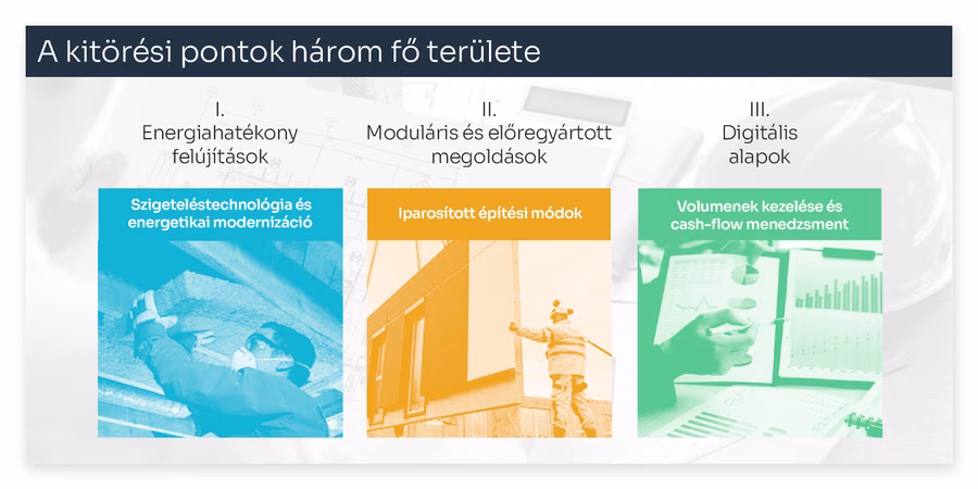 Az energiahatékonysági szegmensre történő szakosodás, az iparosított építési technológiák integrálása, valamint a digitális kontrollmechanizmusok bevezetése a jelenlegi ciklusban a piaci fennmaradás alapfeltétele, egyúttal a versenyképesség záloga is lehet.