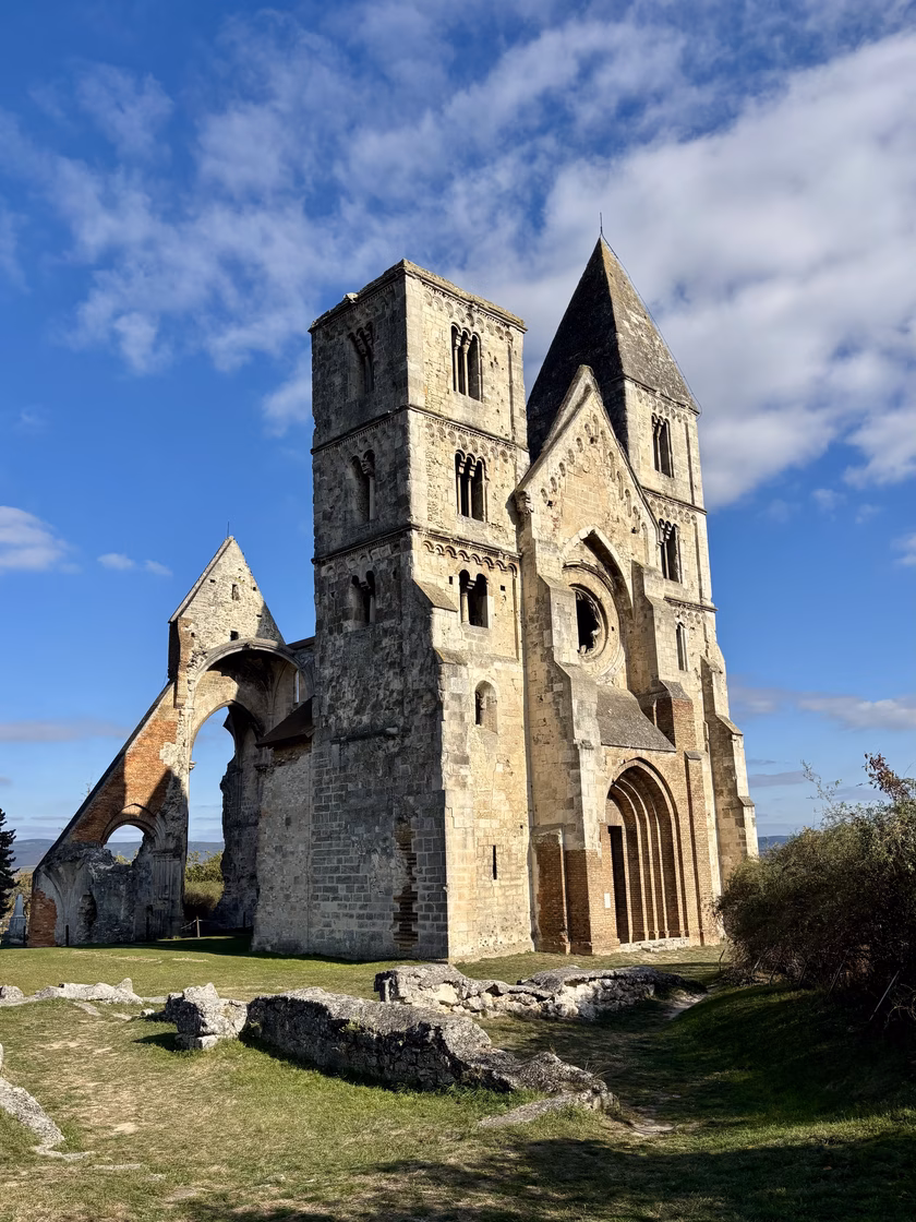 Későromán és kora gótikus stílusjegyeket is magán visel, ezért francia hatást kelt a XIII. század első felében épült monostortemplom, amelynek mára csak a romjai tekinthetők meg Zsámbék településen.
