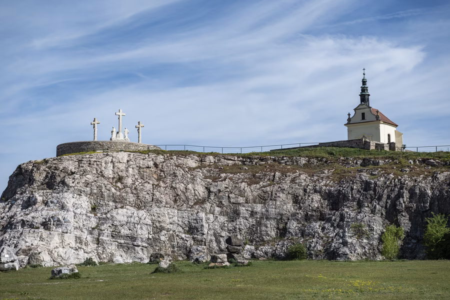 A kápolna egy középkori templom maradványainak felhasználásával épült, így egy korai leletmentésnek is tekinthető. A domboldalban ráadásul komoly geológiai és régészeti emlékek láthatók, ugyanis már az őskorban kőbányaként használták a területet. A sziklafalak és a dombtető – ökológiailag rendkívül értékes – gyeptársulásai valóban a kopár Szentföld hangulatát idézik.