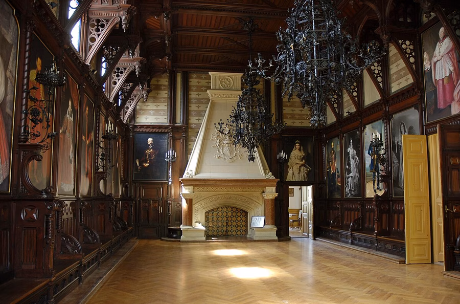Hauszmann Alajos tervezte a kastély legdíszesebb tereit, az ősök csarnokát, a könyvtárat és a kápolnát is.