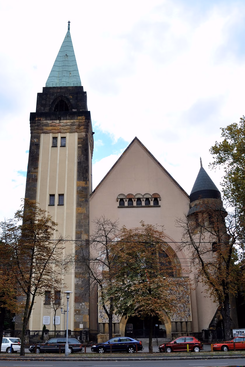 A magyar protestáns templomépítészet meghatározó alakja Sándy Gyula. A két háború között több mint egy tucat evangélikus templomot tervezett országszerte, kombinálva a hagyományos elemeket a szecesszióval, sőt az art deco irányzattal. Ezek a jellegzetességek legfőbb alkotásán, a Széll Kálmán téri postapalotán is felfedezhetők.