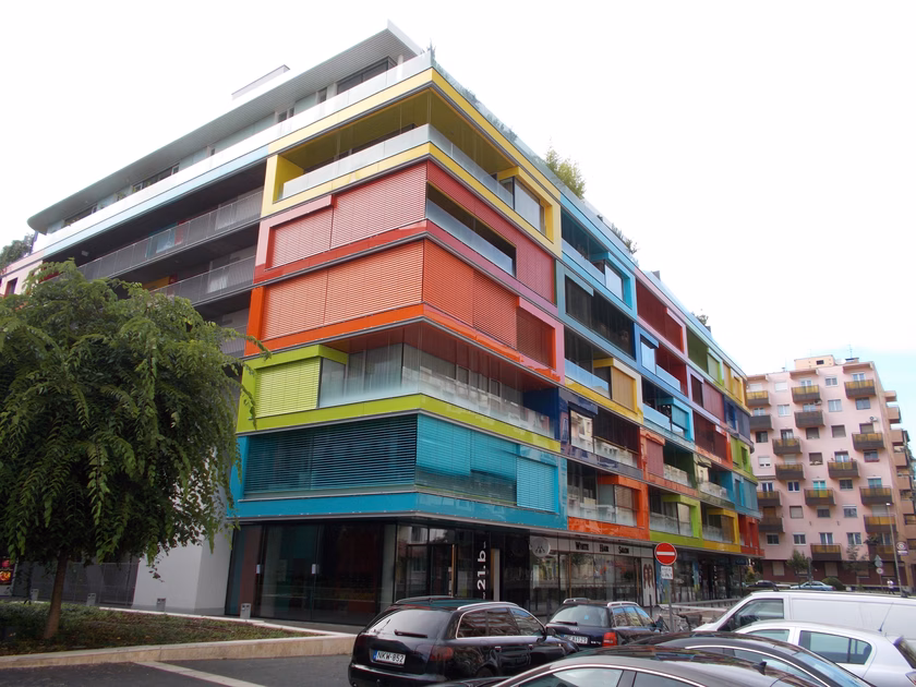 Ahogy ez a színes válogatás mutatja, Budapest messze több, mint a szürke vakolat és a sárgás mészkő megszokott látványa. A Lukács-Vikár páros játékos üveghomlokzataitól a Spirál-ház rétegzett színdinamikáján át a Bercsényi utcai merész lakódobozokig – a város számos pontján büszkén vállalja a színeket.