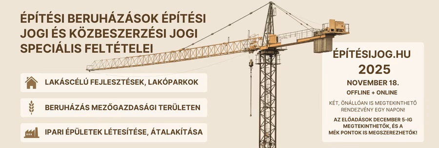 A konferencián többek között Dr. Jámbor Attila, az Építésijog.hu főszerkesztője mutatja be a megújult Építésijog.hu portált, valamint áttekinti azokat az építési jogszabály-változásokat, amelyek 2025 második felében léptek hatályba. Az Otthon Start Program építési jogi hátterét Gombos Márk, területi tervezésért és építésügyi igazgatásért felelős helyettes államtitkár ismerteti, Perényi Lóránt, építészeti stratégiáért felelős helyettes államtitkár pedig az Országos Építészeti Tervtanács működéséről, a leggyakoribb tervezési hibákról és az új többfokozatú tervtanácsi jogorvoslati rendszerről beszél.
