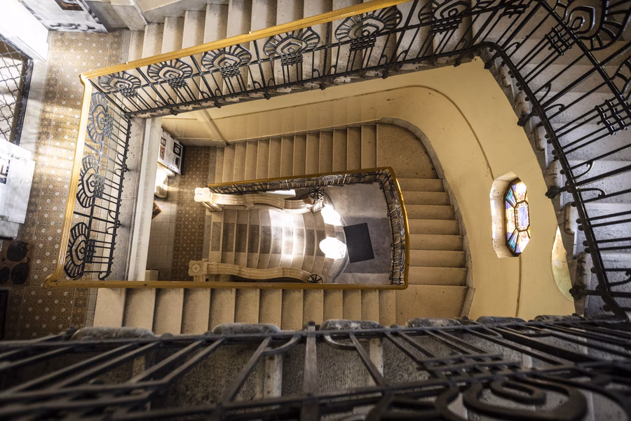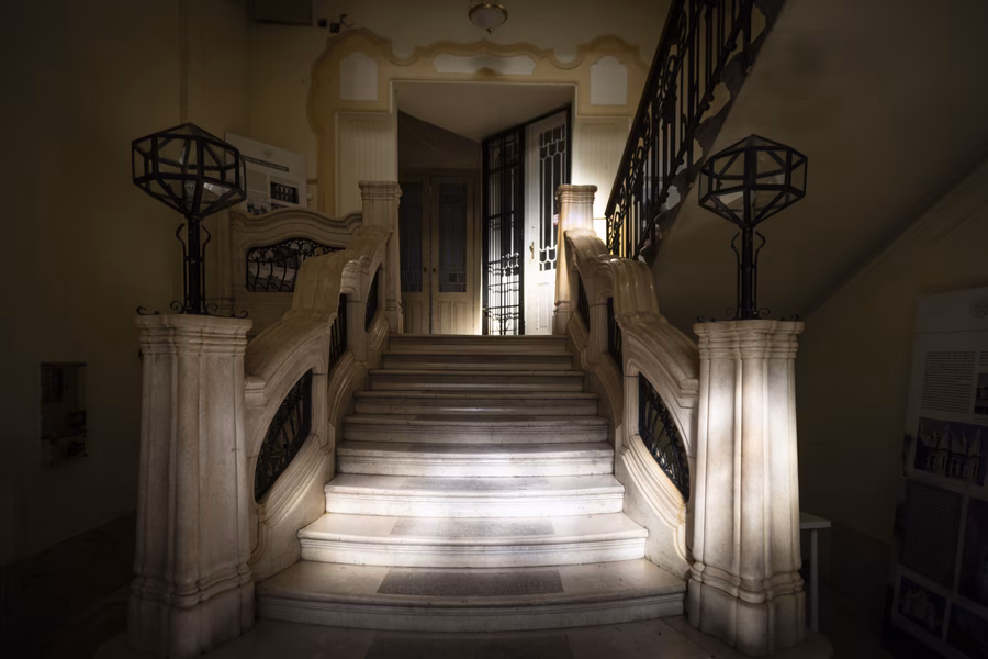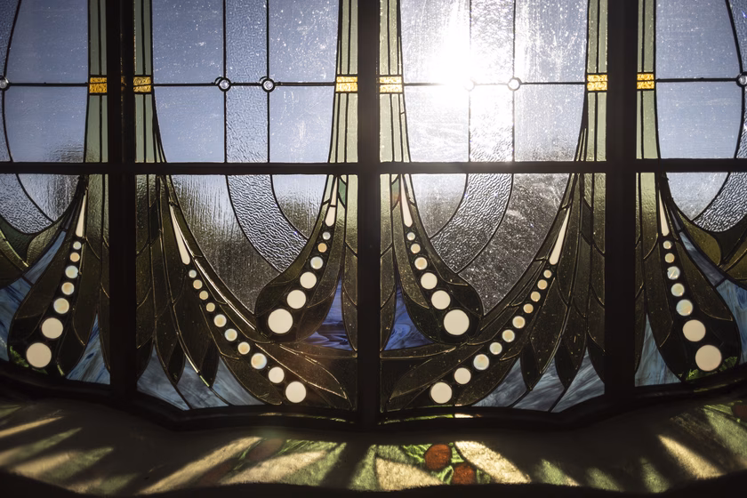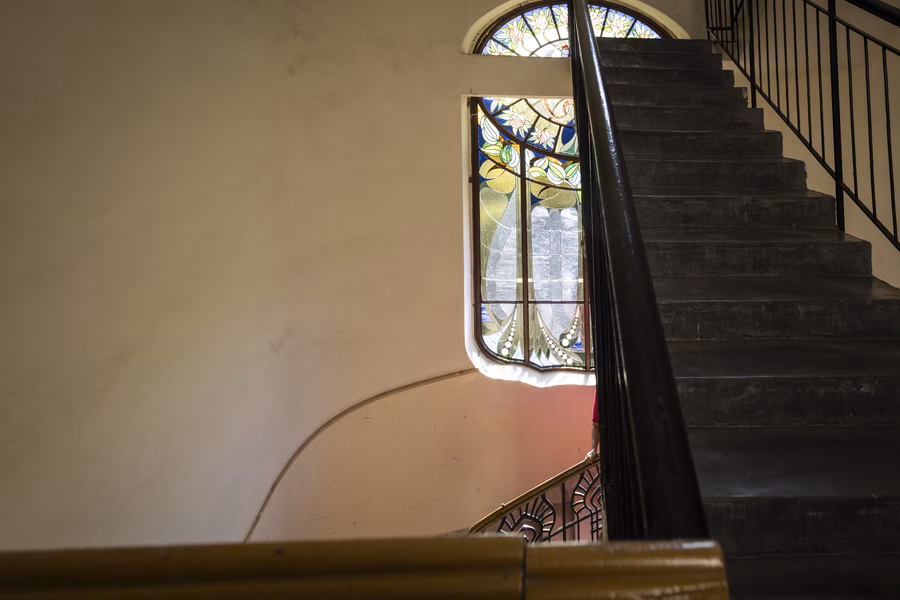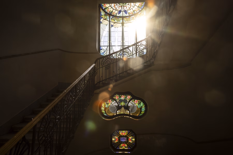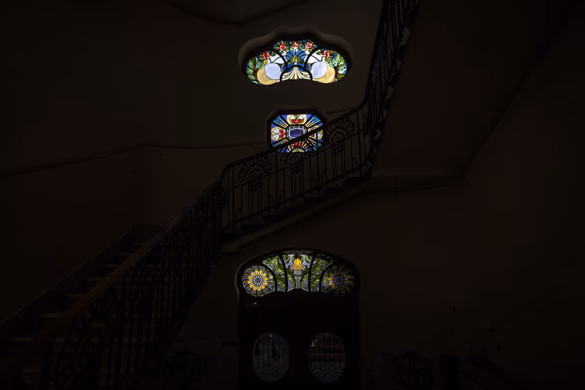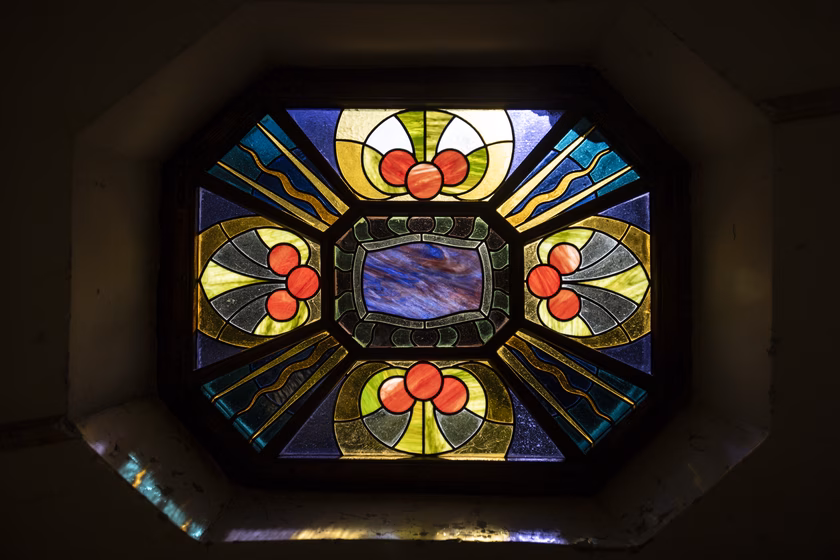 De a lakás küszöbén kívül is folytatódik a ház, ami akkoriban nem volt túl fényes állapotban. Margit, mint mindenki más, szereti a jó történeteket, itt pedig egy kifejezetten tragikusra bukkant: az archív fotók láttatták, hogy a Sonnenberg-házat Kőrössy egykoron ékes szecessziós díszítéssel tervezte, a kapu fölött hatalmas, színes Róth Miksa-ablaküveg virágzott.