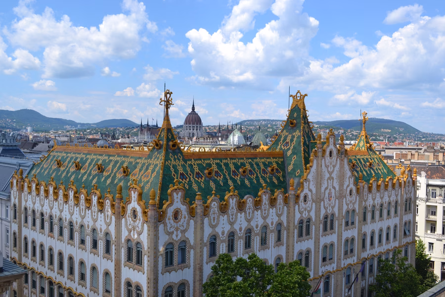 Persze Lechner nem sejtette, hogy a drónok világában pazarul elkészített tetői Budapest nevezetességei lesznek. A cserepeket, a tetőgerinceken végigfutó elemeket, a kéményeket és a szobrászati alkotásokat természetesen mind a pécsi gyárban készítették. Zsolnay és Lechner valósággal tobzódott a különböző színes mázakban, amiket hosszú idő alatt kísérletezte ki – korábbi cikkünkben már említettük, hogy Lechnert egyáltalán nem érdekelték a tervezési és kivitelezési határidők, amit persze a megbízókról nem lehet elmondani.