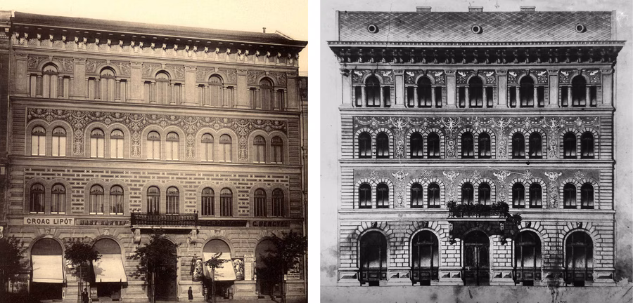 Lechner Ödön és Kecskemét kapcsolata már jóval a nevezetes városháza építése előtt kialakult. Az ügyes városatyák 1874-ben döntöttek úgy, hogy a régóta a város birtokában álló pesti belvárosi telekre bérházat építenek, aminek bevételei szépen gyarapíthatják majd az alföldi város kasszáját. A munkával a fiatal, tehetséges építészt, Lechner Ödönt bízták meg, aki első ránézésre teljesen hagyományos, ugyanakkor rendkívül ízléses, igényes épületet alkotott. A sarokrizalit fülkéibe a korszellemnek megfelelően mitológiai alakokat tervezett. Ám ekkor az erős nemzettudatú városatyák közbeléptek, és