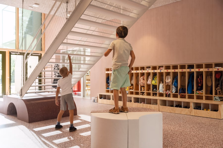 A függőfolyosók, az árnyékolók és a játékosan elhelyezett ablakfrontok elveszik a betonépület nehézkességét, és fényárban úszó menedékké varázsolják azt. A projekt kiemelkedő érdeme, hogy a meglévő adottságokat nem korlátként, hanem lehetőségként kezelte, bebizonyítva, hogy a nehéz örökségből is születhet világszínvonalú építészet, amely érdemben javítja a legkisebb városlakók mindennapjait.