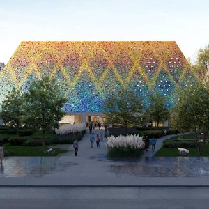 A fehér gólyák bemutatását célzó új épület gólyafészekre emlékeztető megjelenésével az épület funkcionális tartalmát fogja megjeleníteni.
