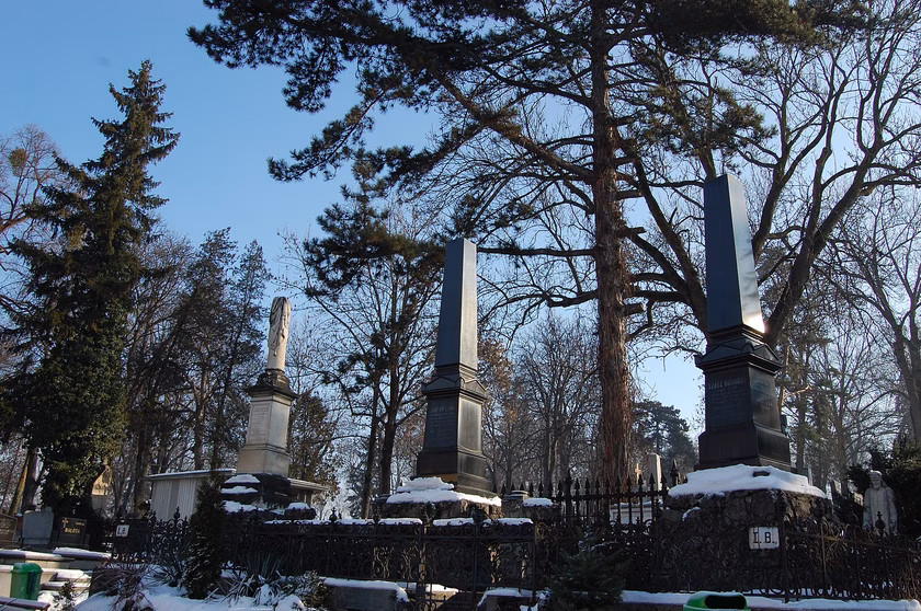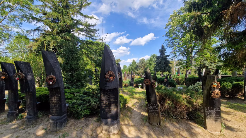 katonás rendben állnak az obeliszkek, német nyelvű, sokszor gót betűs feliratokkal, a régi elődökre emlékezve.