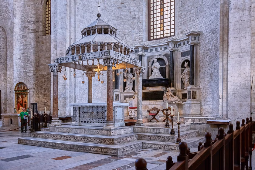 Szent Miklós ereklyéi 1087-ben kerültek Bariba. Ezt az eseményt a korabeli itáliai források „elszállításnak” nevezik, valójában azonban a myrai székesegyházból bari kalózok elrabolták a hajózás védőszentjeként is ismert püspök ereklyéit. A város ezáltal a szent tiszteletének központjává vált és azóta is zarándokok tömegeit vonzza.