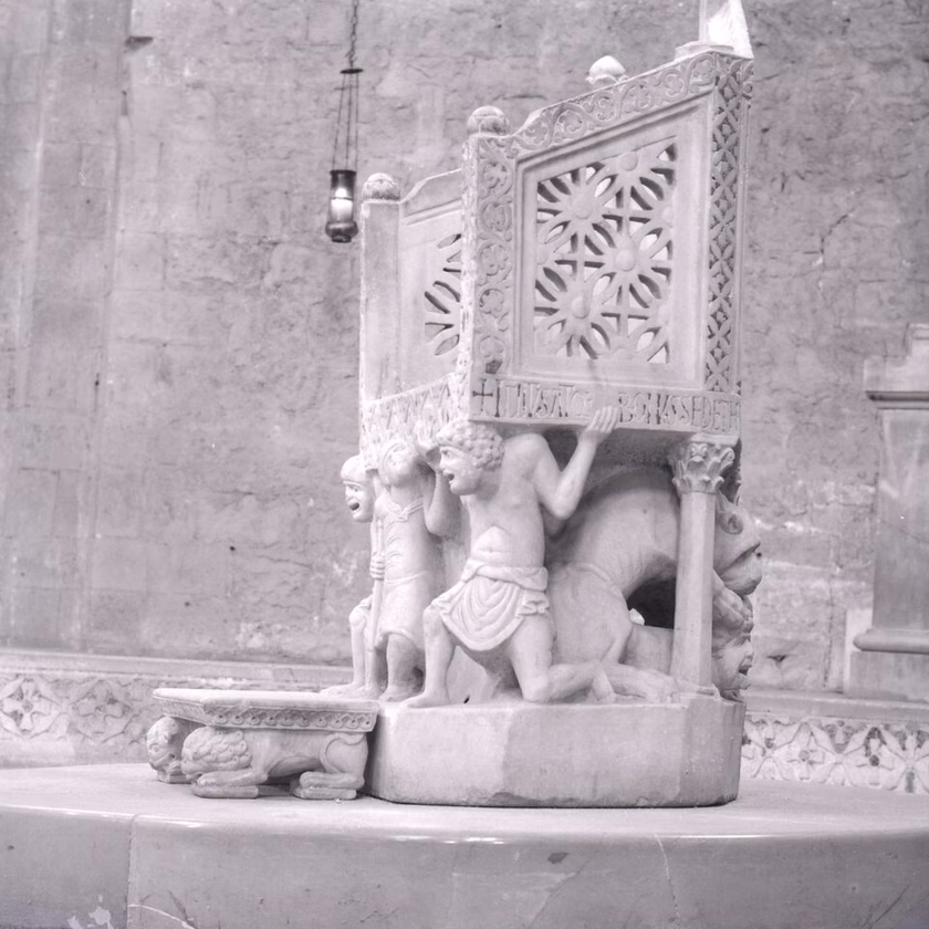 Szintén látványos a püspöki trón, amely a főhajó végében található, emberalakos domborművekkel és oszlopokkal díszített, és a liturgikus hierarchia hangsúlyozására szolgál.