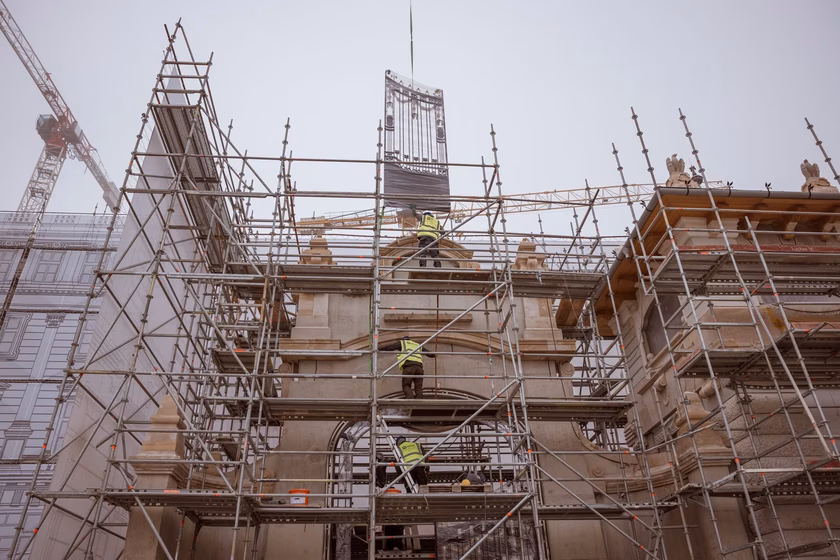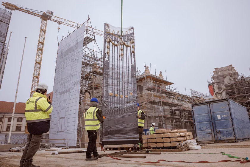 A Szent György téri József főhercegi palota homlokzati munkái jó ütemben haladnak – derült ki a Nemzeti Hauszmann Program Facebook-oldalának posztjából. Egyre több könnyített homlokzati ornamentum és ablak foglalja el végső helyét, miközben egyre nagyobb felületen válik láthatóvá az újjászülető épület historizáló homlokzata. A palotától északra elterülő József kertet szegélyező díszes kőkerítés, az úgynevezett Loggia újjáépítése is hamarosan befejeződik.