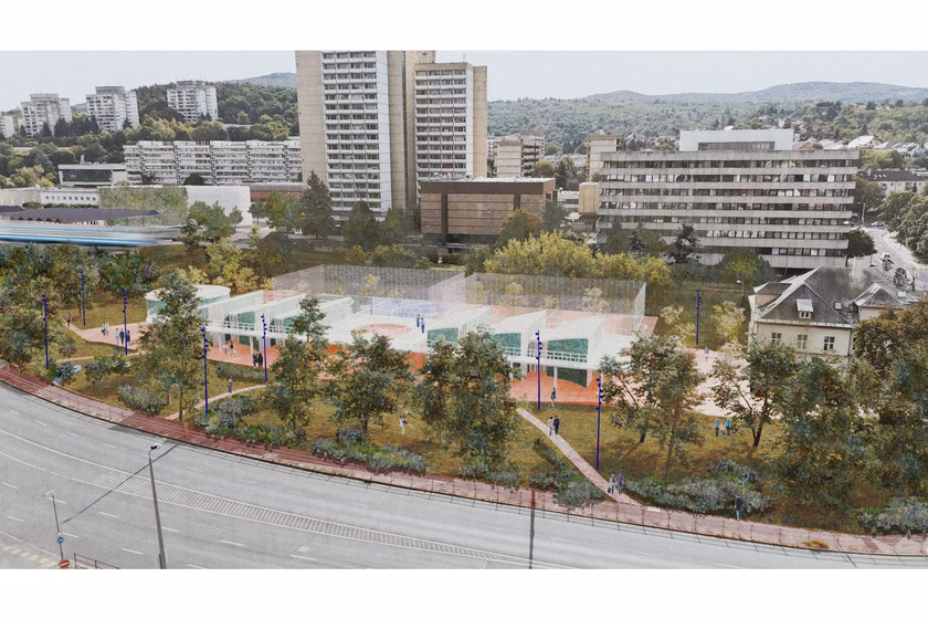 A városban szunnyadó potenciál a felszínre tör, ahogy a gombák termőtestje is előbújik egy kiadós eső után. A gomba-analógia a terven építészeti gesztusként is megjelenik, szépen végigvonul a mű egészén, új karaktert adva a városképnek. A pályaművet a Bírálóbizottság fiatalos, lendületes nyelvezete és egységes koncepciója miatt Megvételben részesíti.”