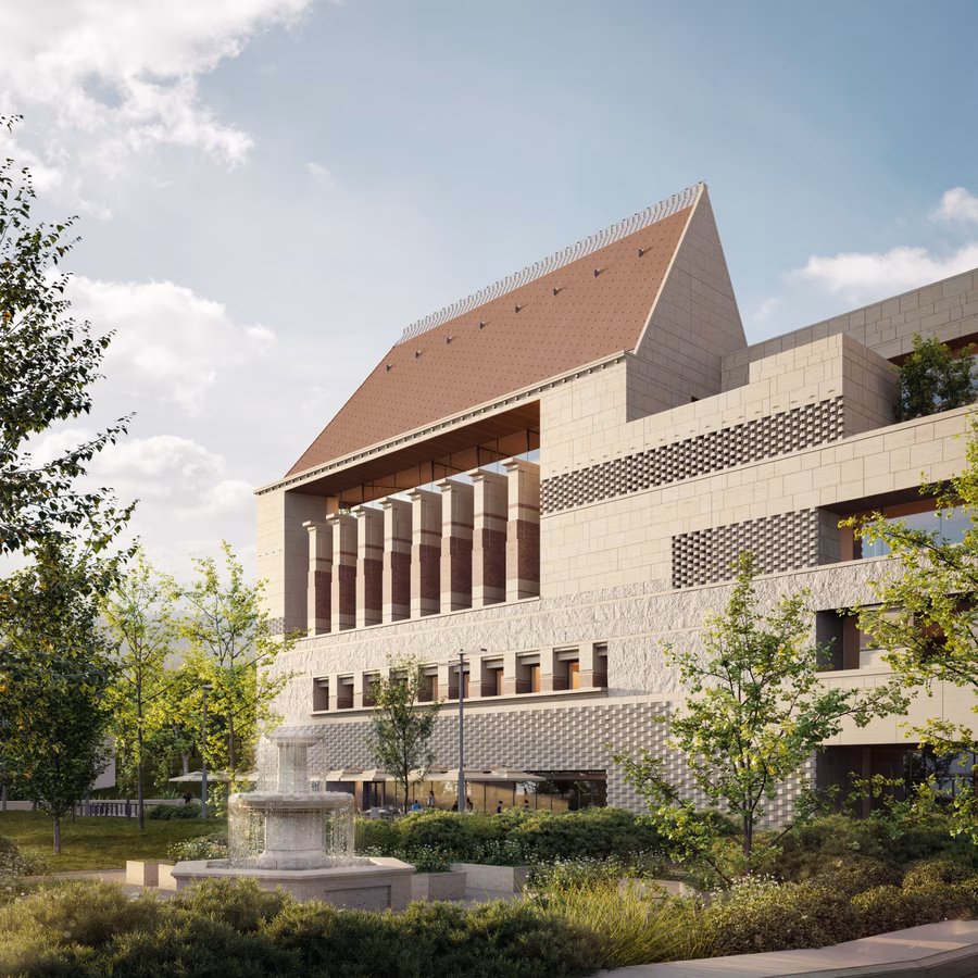a komplexum formáiban ókori, középkori és kortárs stílusokat egyaránt megidéz.