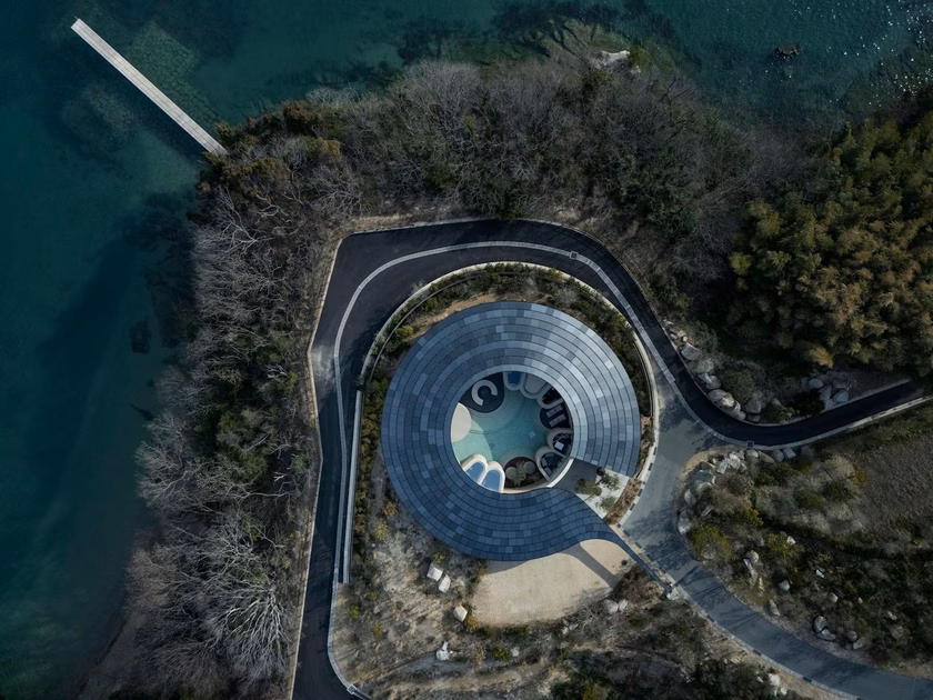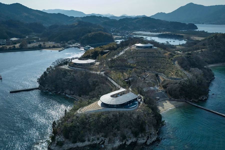 A Setouchi-szigetvilág festői tája, a dombok és a tenger találkozása inspirálta az épületek formáját, amelyek egyszerre nyitnak a panorámára és biztosítanak intim, zárt tereket.