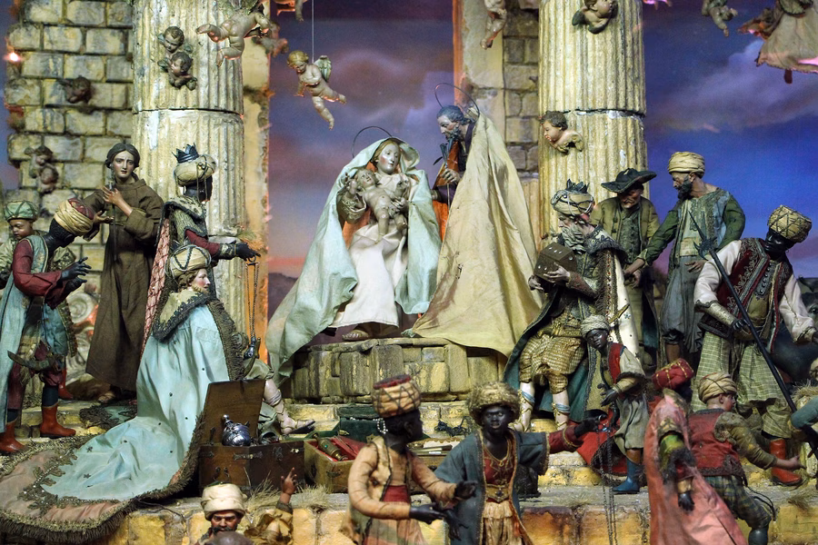 A nápolyi betlehemben semmi sem véletlen, minden alak értelmezhető, minden jelenet beszél valamiről.