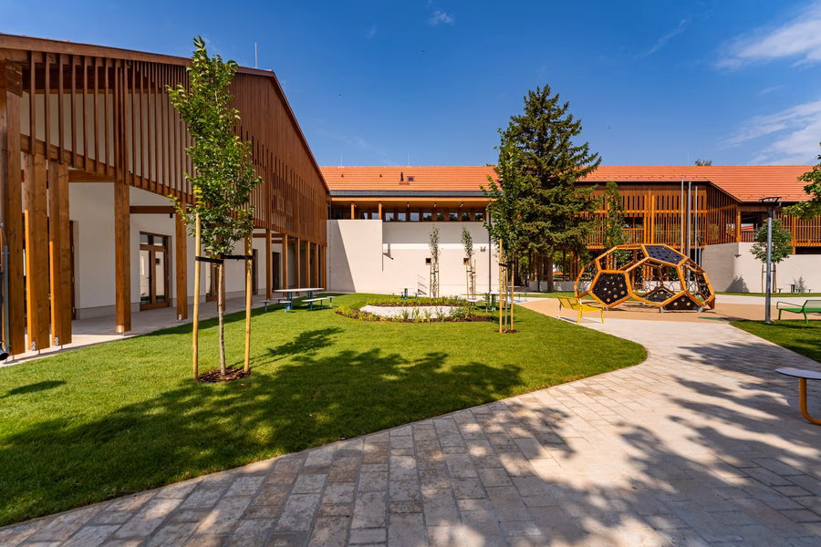 A szántódi gyerektábor megújítása Turi Gergő munkája. A Balaton-parti tábor átalakítása során a fedett-nyitott terek, a csűr jellegű központi épület és a természetes anyaghasználat olyan környezetet teremtett, amely a gyerekek számára élményszerű, emberléptékű és időtálló.