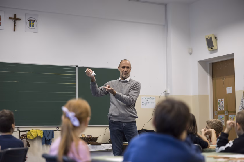 Az ötletet örömmel fogadta a Szent II. János Pál Iskolaközpont 2.A osztálya, ezért hamar el is kezdtük a bemelegítést a közös programra.