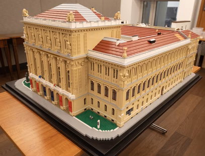 Mintegy hatvanezer LEGO-kocka felhasználásával megépítették az MTA-székház kicsinyített mását. A Fiatal Kutatók Akadémiájának kezdeményezésére megvalósuló projektet Düczy Balázs LEGO-építőmester vezette, és a végeredmény magáért beszél: az 1:75-ös méretarány lehetővé tette, hogy az alkotás kifejezetten részletgazdagon és hűen másolja le a Friedrich August Stüler tervei szerint megépült székházat.