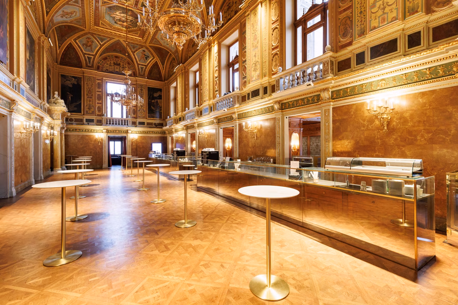 Érdekesség, hogy a könnyebb tömeg és a jó akusztika érdekében a páholyrendszer fából készült – mindezt elrejti a gondos aranyozás, csupán a falakat megkopogtatva tapasztalhatjuk a „cselt”. A külön szalonból nyíló kétszintes királyi páholy kiemelkedik a nézőtér ívéből, tömegét a Tenor, a Szoprán, az Alt és a Basszus allegorikus szobrai koronázzák meg. Hasonlóan kétszintes kialakításúak a patkóívet lezáró proszcénium páholyok is.