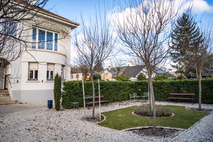 A kertvárosi hangulat, a nyugodt környezet és egy régi villa építészete nagyon jól működik együtt.
