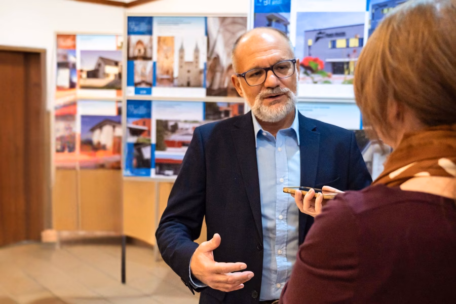 Ez már a nyolcadik biennále, és a hagyománynak volt egy előzménye. Amikor Heckenast János volt a kamara elnöke, ő szervezett egy hasonló kiállítást, majd az akkori elnökkel, Ábrahám Ferenccel – én akkor alelnök voltam – megbeszéltük, hogy ez egy jó ötlet, vigyük tovább. A képeken nemcsak az épület látszik, hanem az is, ki tervezte, ki építette, hol van, mekkora, milyen funkciójú. Tehát a közönség számára is értelmezhető információkat tartalmaz. Sokszor hallottam már olyat, hogy „jé, ezt is itt építették?”, és ez jó érzés. Aztán kitaláltuk, hogy folytassuk ezt a sorozatot, annak ellenére, hogy akkor a kamaránál épp nem volt forrás, mégis sikerült rá pályázni.
