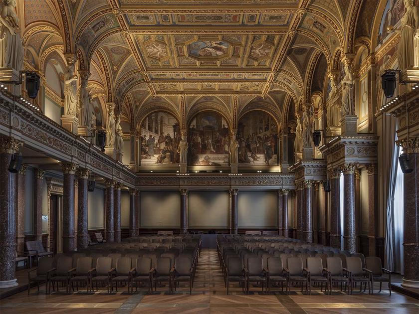 A felújítás egyik legnagyobb kihívása az volt, hogyan lehet egy erősen szimbolikus, történeti épületet úgy korszerűsíteni, hogy közben megmaradjon az a tekintély és reprezentativitás, amelyet generációk óta hordoz. A Díszterem és a Képtár megújulása ennek a gondolkodásnak a lenyomata: finom beavatkozások, visszafogott, mégis határozott építészeti gesztusok jellemzik az átalakítást.