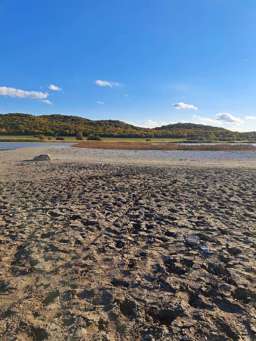 Az utóbbi hónapokban azonban mintha egy másik tájba csöppentünk volna: a mederben kevés víz, a tó közepén száraz félsziget, körülötte repedezett fehér iszap és tanácstalanság.