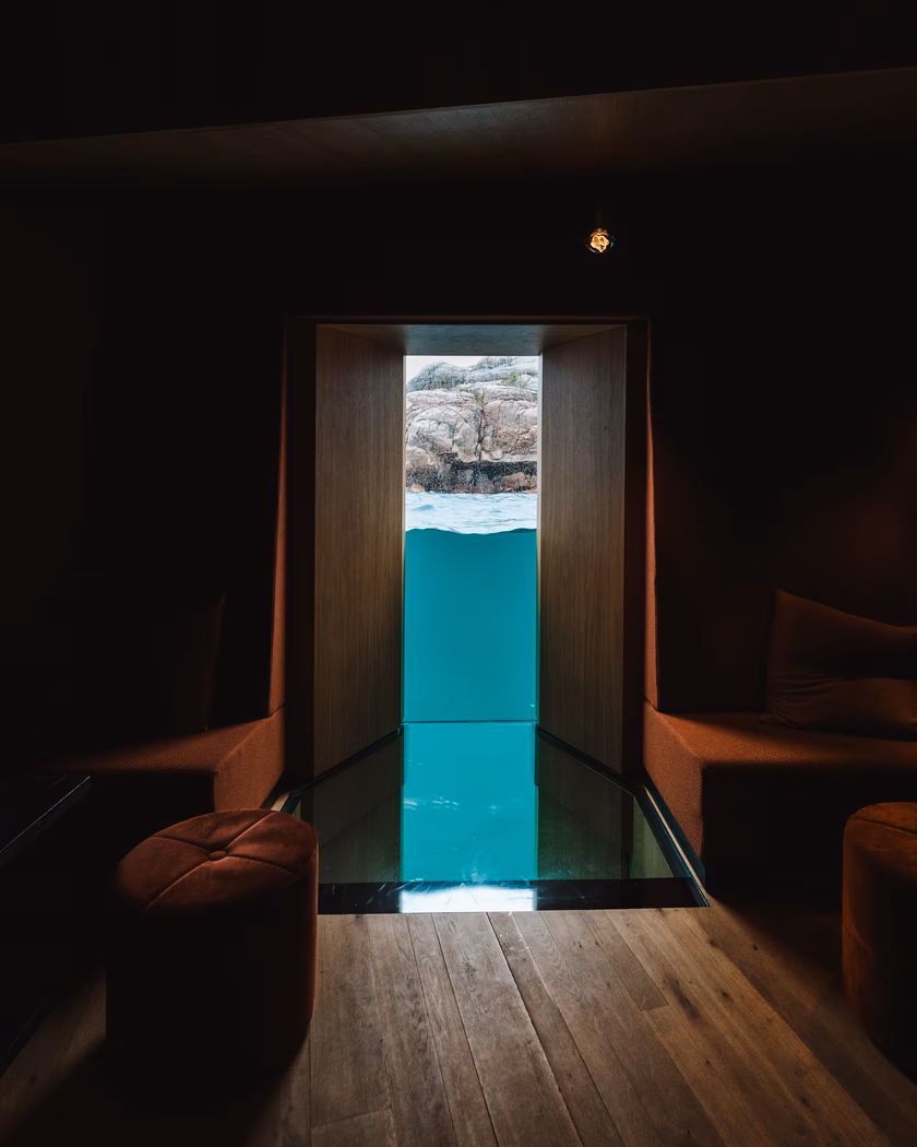 Az étterem központi eleme a 11 méter széles és 3,4 méter magas akrilablak, amely közvetlen kilátást nyújt a tengerfenékre. Ez az ablak nem akváriumként működik, hiszen nem mesterségesen kialakított környezetet mutat a nézelődőknek, hanem az Északi-tenger valós, folyamatosan változó élővilágába enged bepillantást. A látvány évszakonként és időjárásonként más és más. A hínárerdők mozgása, az algák változó színei, a halrajok és planktonfélék jelenléte egyfajta „víz alatti színházként” működik.